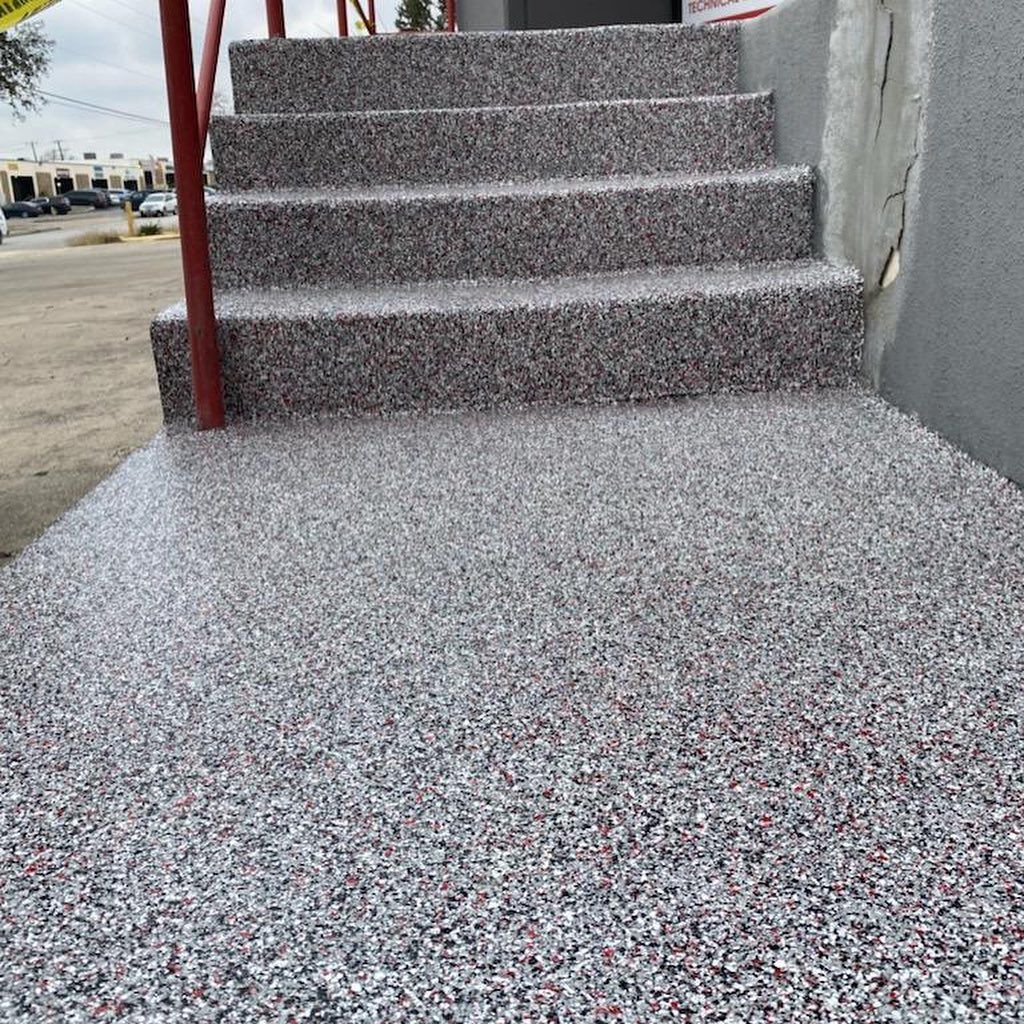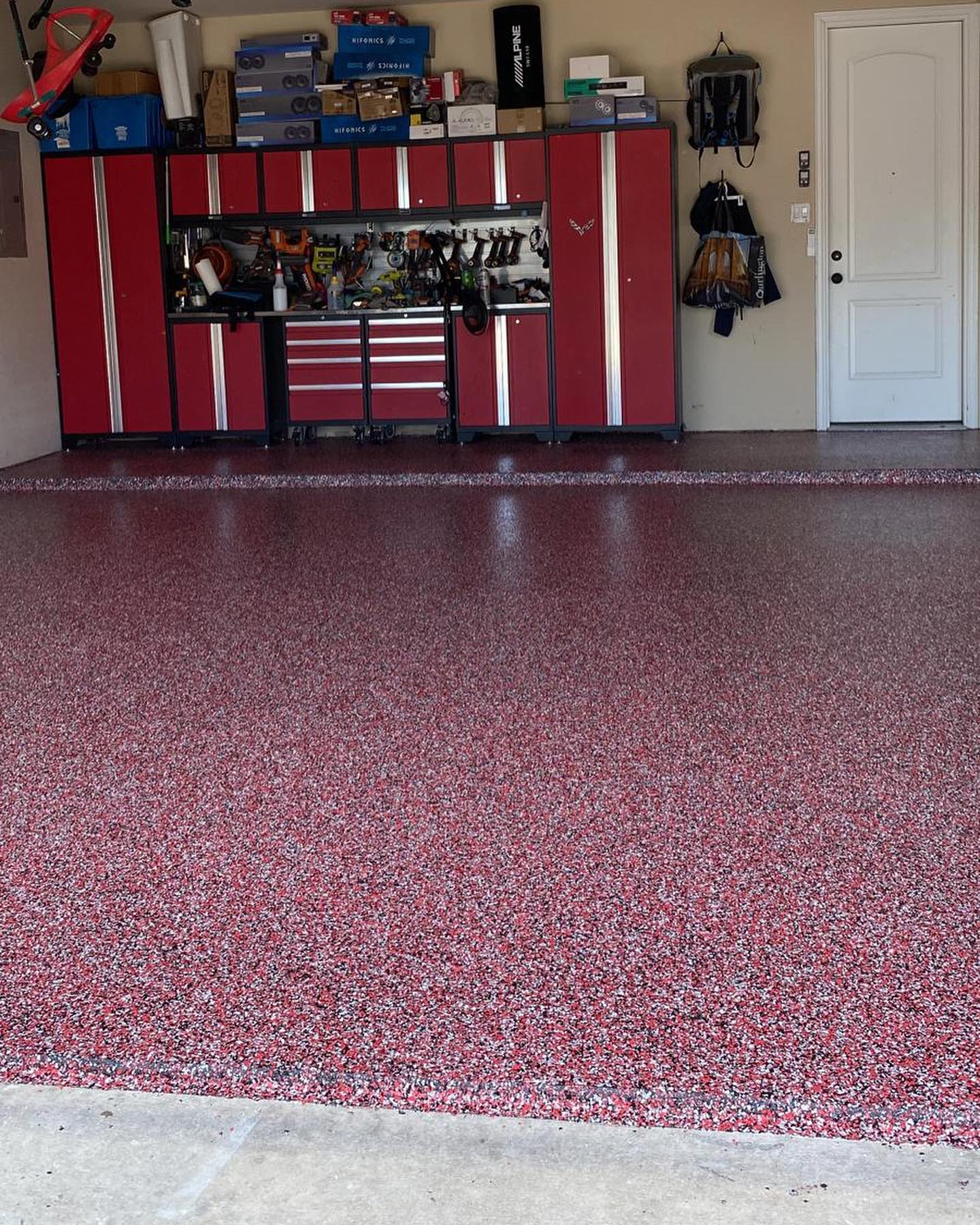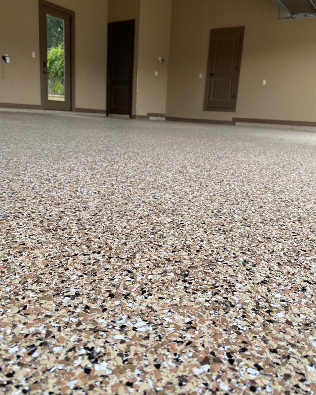 This impact-resistant epoxy coating provides extreme durability. It's streamlined finish allows for optimal traction with little to no maintenance. With a wide variety of color blend choices, the options are endless when it comes to customizing your space.